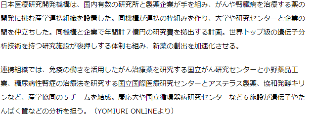 がん・腎臓病の新薬開発加速へ、産学連携組織